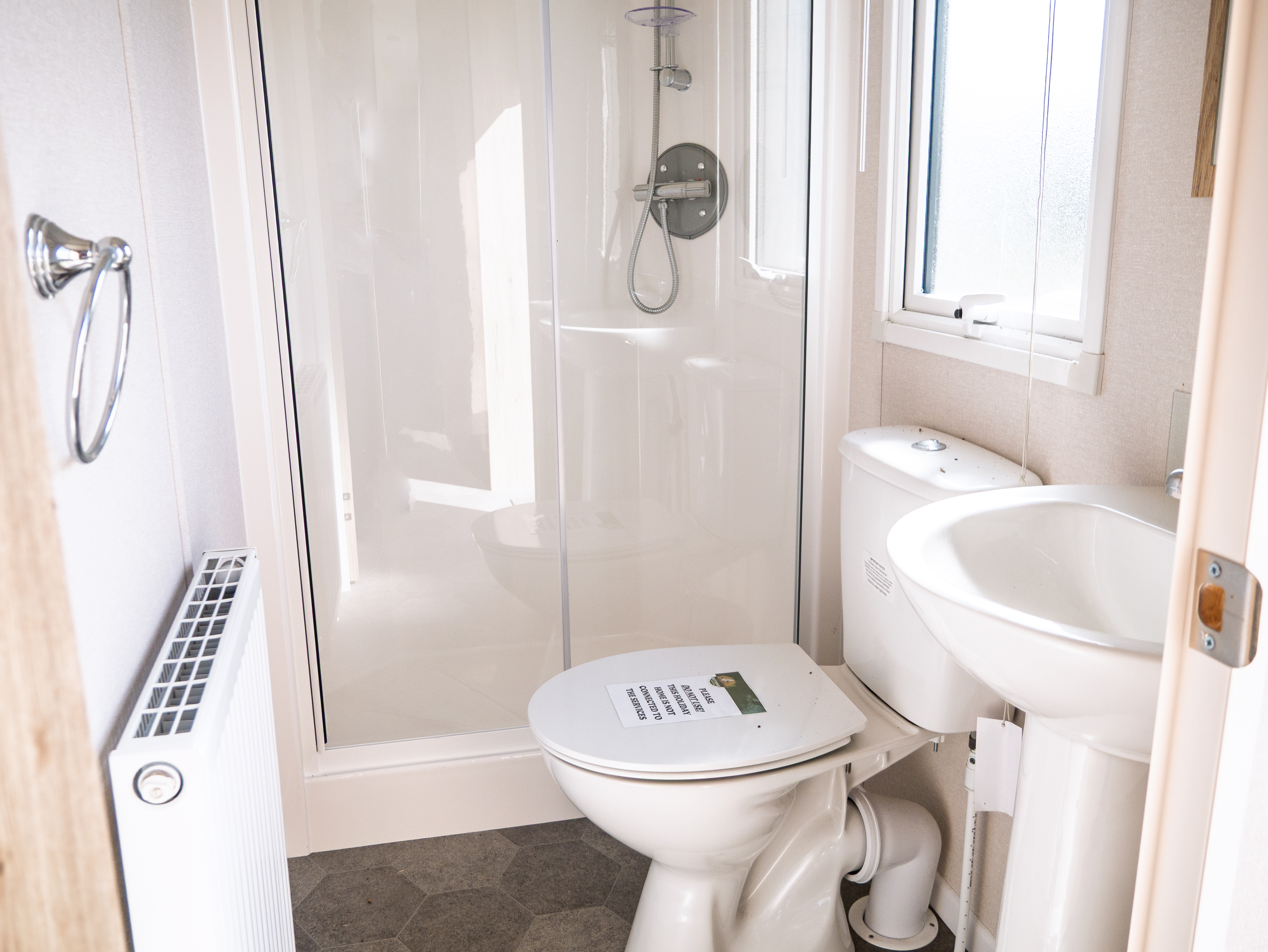 In the shower room you will find a white three piece suite including a shower with thermostatic mixer valve.