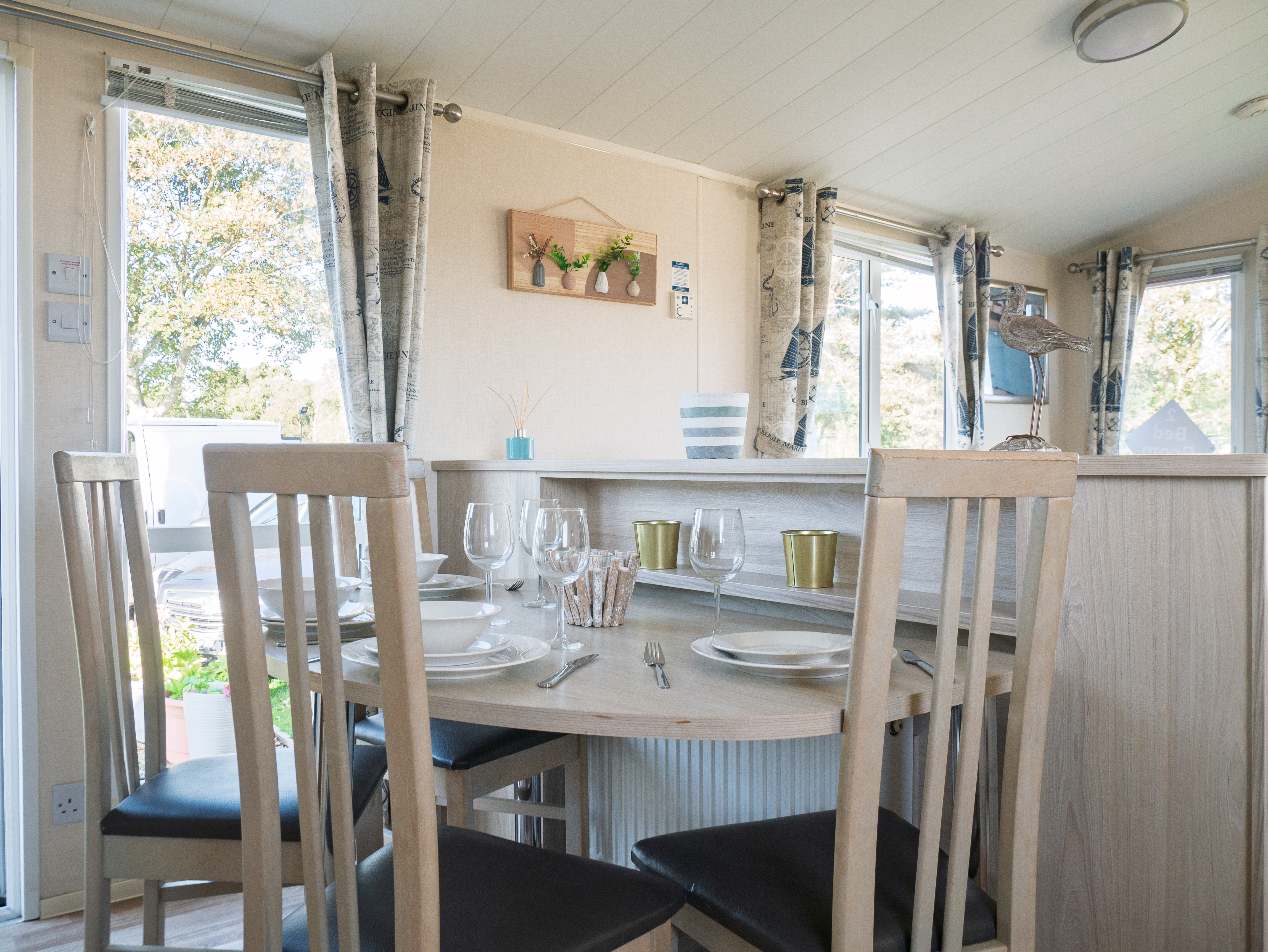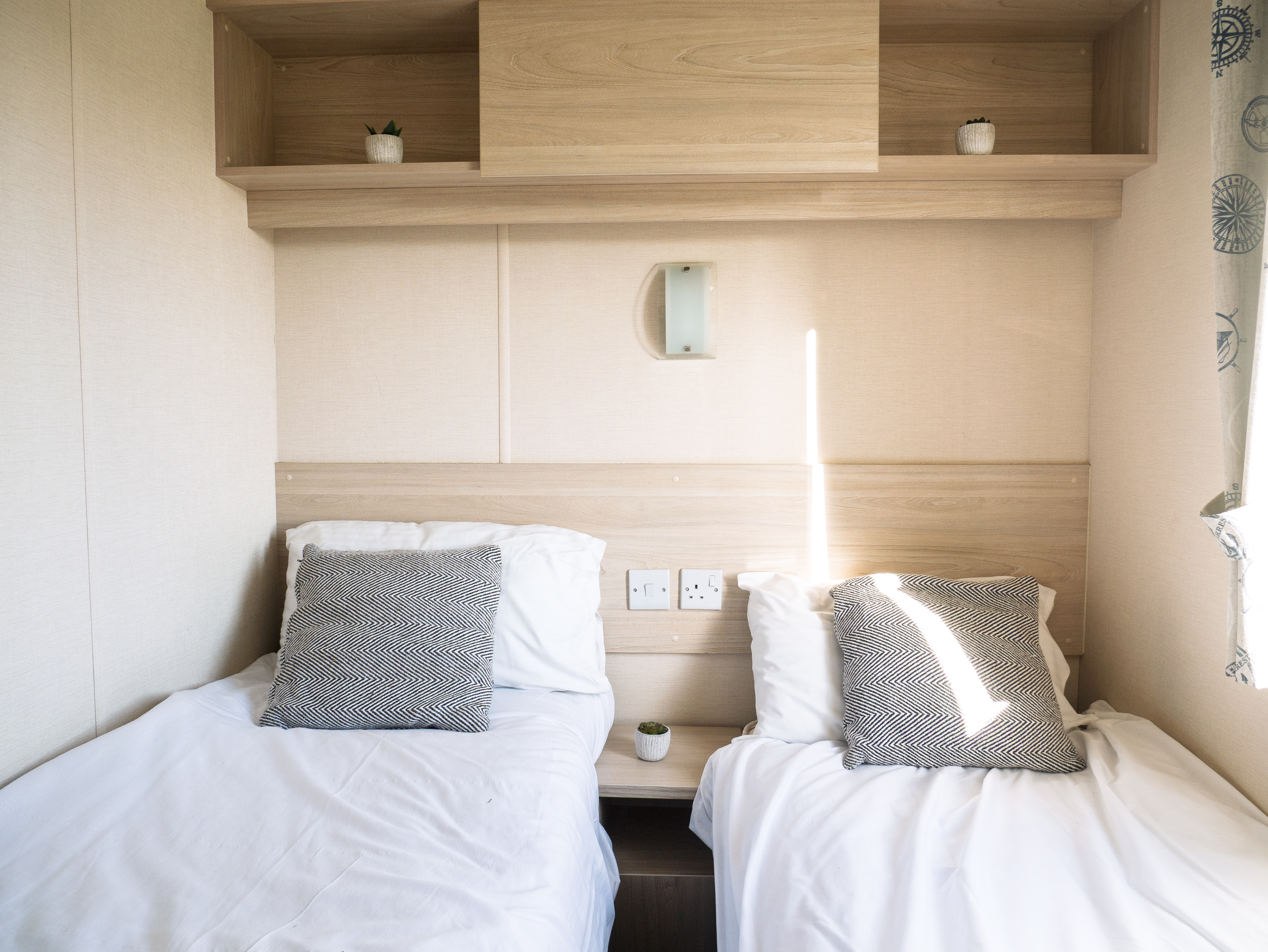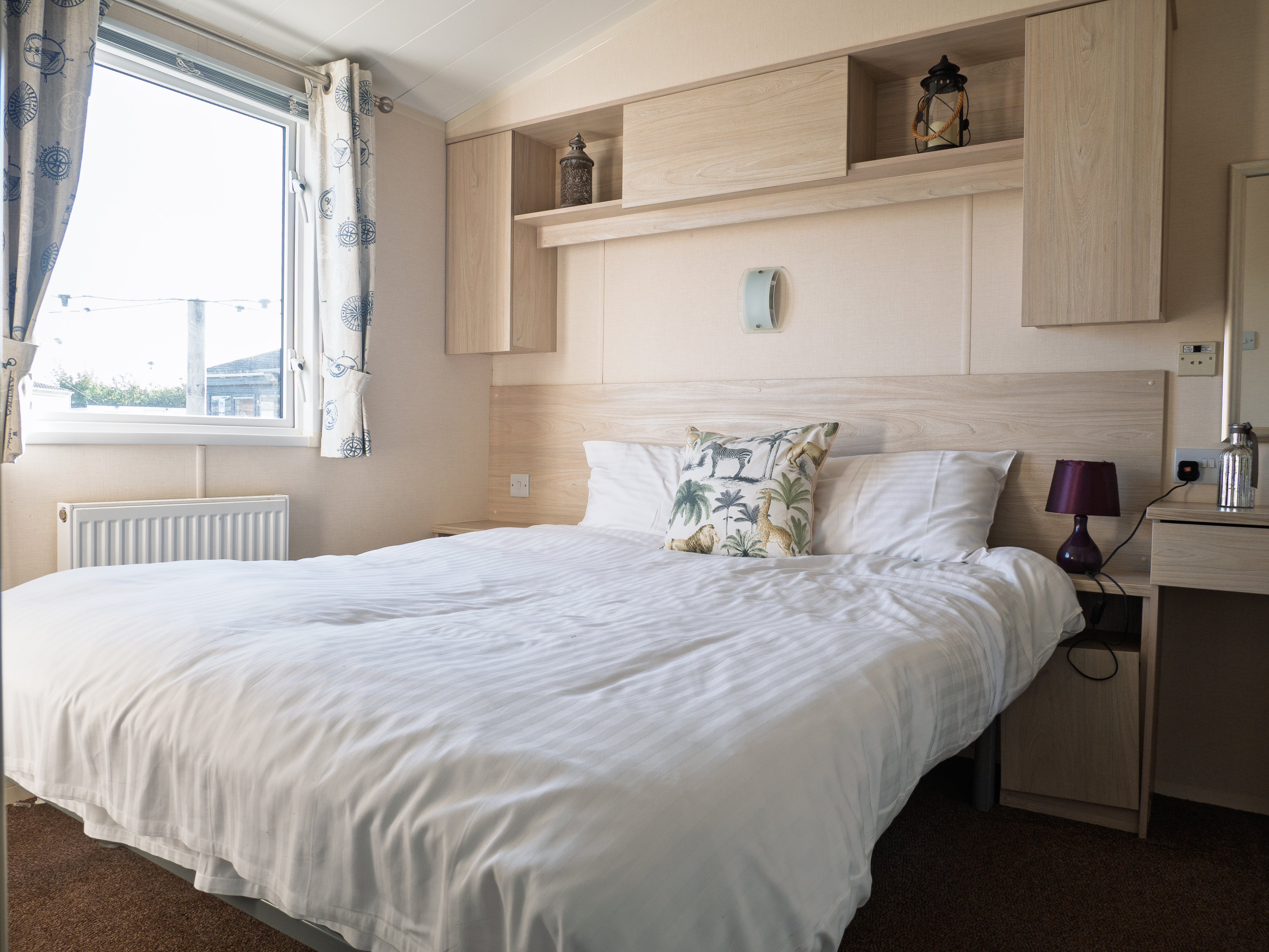 The Atlas Ruby 2014 is a two-bedroom static holiday caravan designed for comfort and modern living, featuring an open-plan layout, large windows, central heating, double glazing, a master bedroom with an en-suite toilet, and a second bathroom with a double shower.