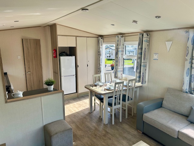 The open-plan living area is bright and inviting, with large windows that allow natural light to fill the space. Comfortable seating and elegant furnishings create a relaxing environment for unwinding after a busy day. The adjacent dining area is perfect for shared meals and family gatherings, while the fully equipped kitchen features modern appliances, generous counter space, and practical storage, making meal preparation easy and enjoyable.
