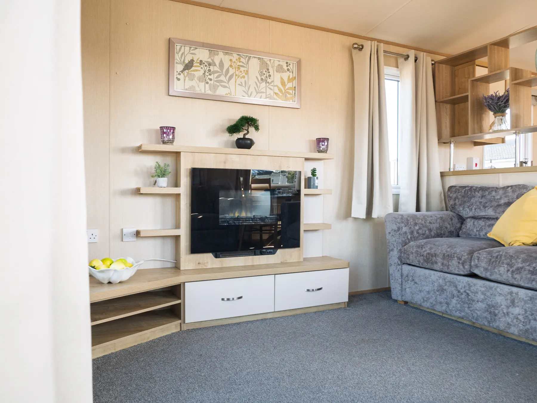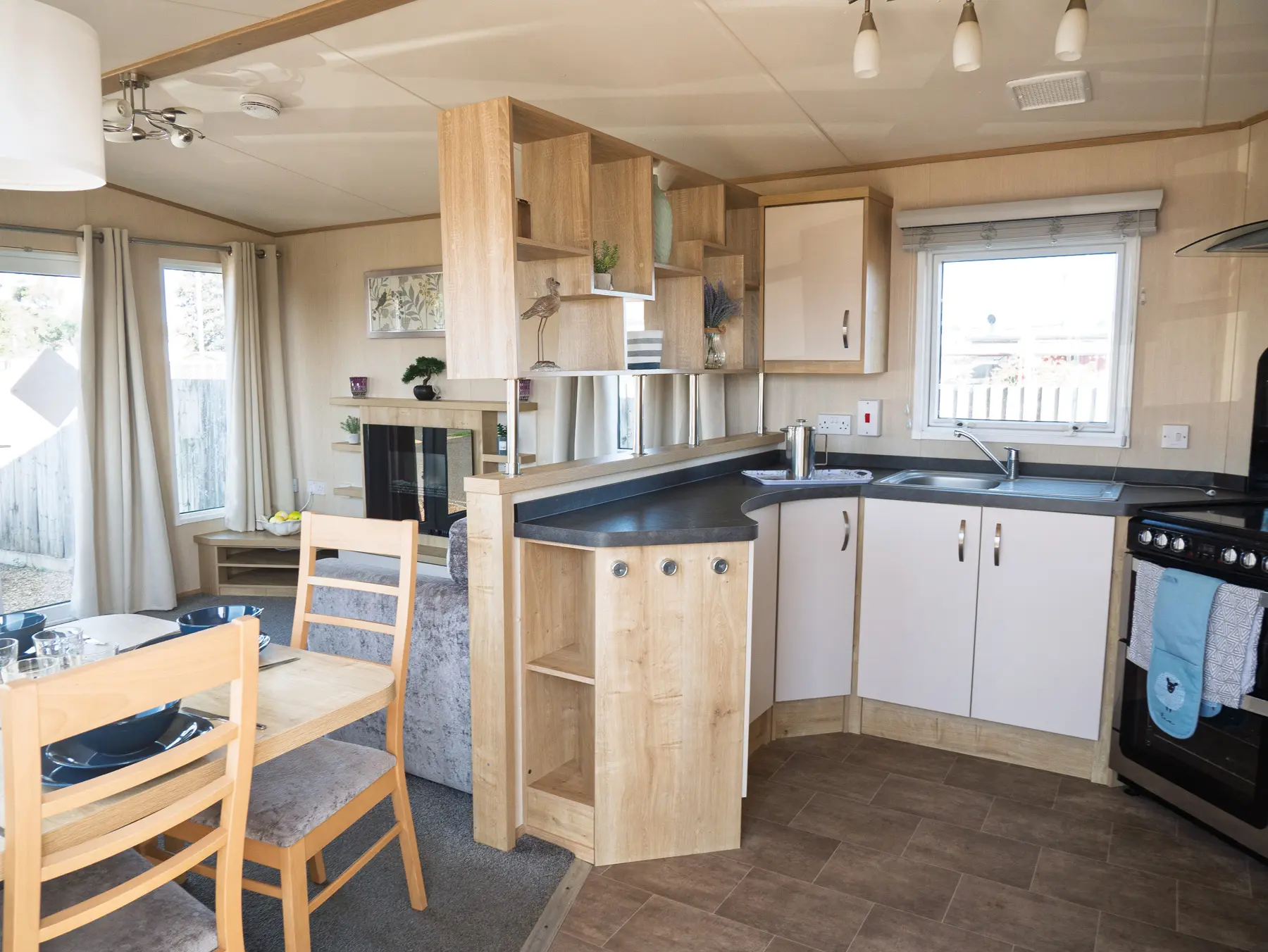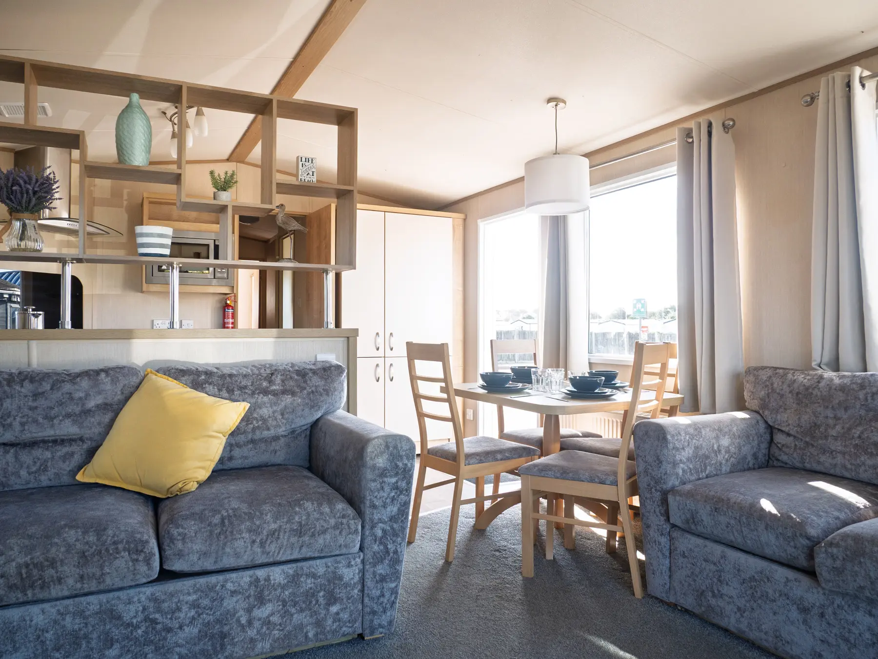 The space is open and uncluttered, harmonising the lounge, kitchen and dining area perfectly. To help you make the most of the views on lovely summer days, there’s a large front window, which comes with double patio doors.