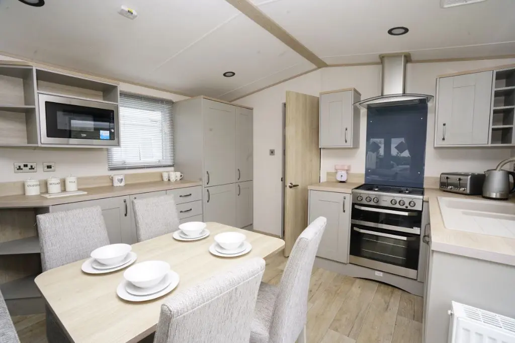 The Windermere represents modern life & luxury living. Its perfect in every way. The open plan lounge and dining area provides the finest sofas & dining table and bench with all the stylish appliances you would expect in your holiday home.