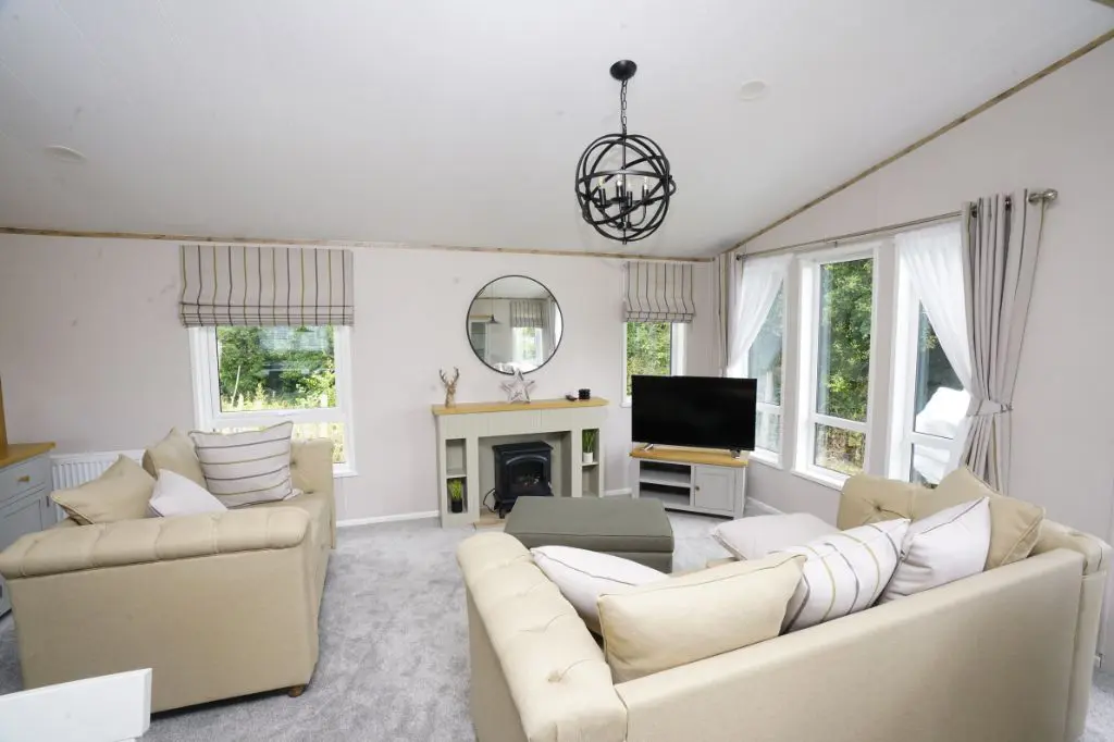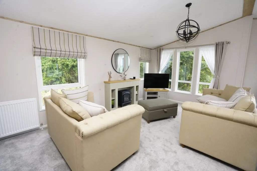 The flagship of the Atlas range, the Debonair Lodge 5 lounge will take your breath away. Pillow back style freestanding sofas take pride of place in front of the electric stove-effect fire which nestles in the country-style fire surround.