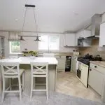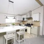 The Debonair Lodge 5 has a beautiful rustic kitchen with wood effect worktops, Belfast sink, country-style doors and large island unit. The range cooker adds to the country feel and is complemented by an integrated fridge/freezer, dishwasher and microwave.