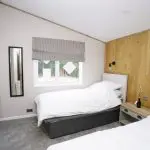 The twin bedroom in the Debonair Lodge 5 is spacious and airy with large single beds. Featuring wall panels and headboards matching the master bedroom, there is plenty of wardrobe and storage space.