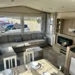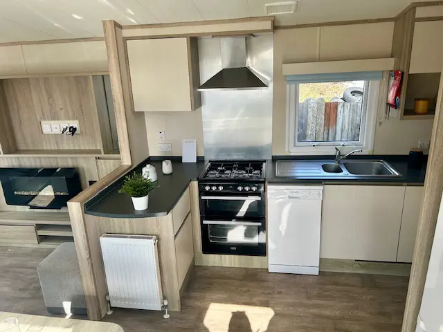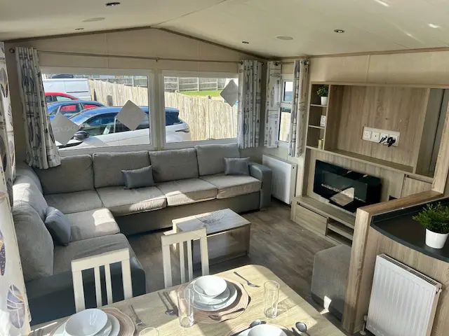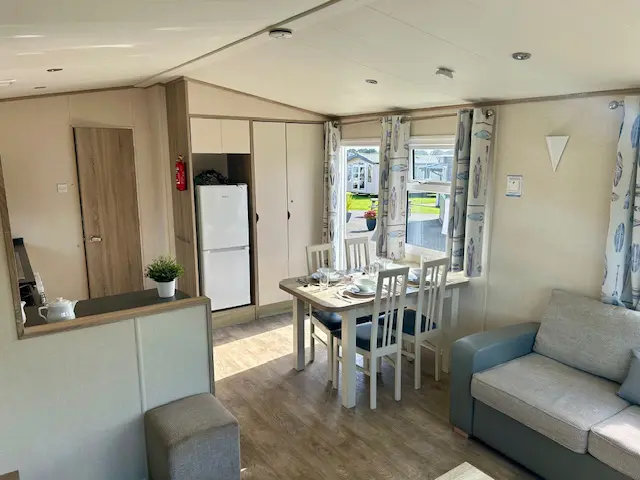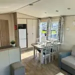 The open-plan living area is bright and inviting, with large windows that allow natural light to fill the space. Comfortable seating and elegant furnishings create a relaxing environment for unwinding after a busy day. The adjacent dining area is perfect for shared meals and family gatherings, while the fully equipped kitchen features modern appliances, generous counter space, and practical storage, making meal preparation easy and enjoyable.