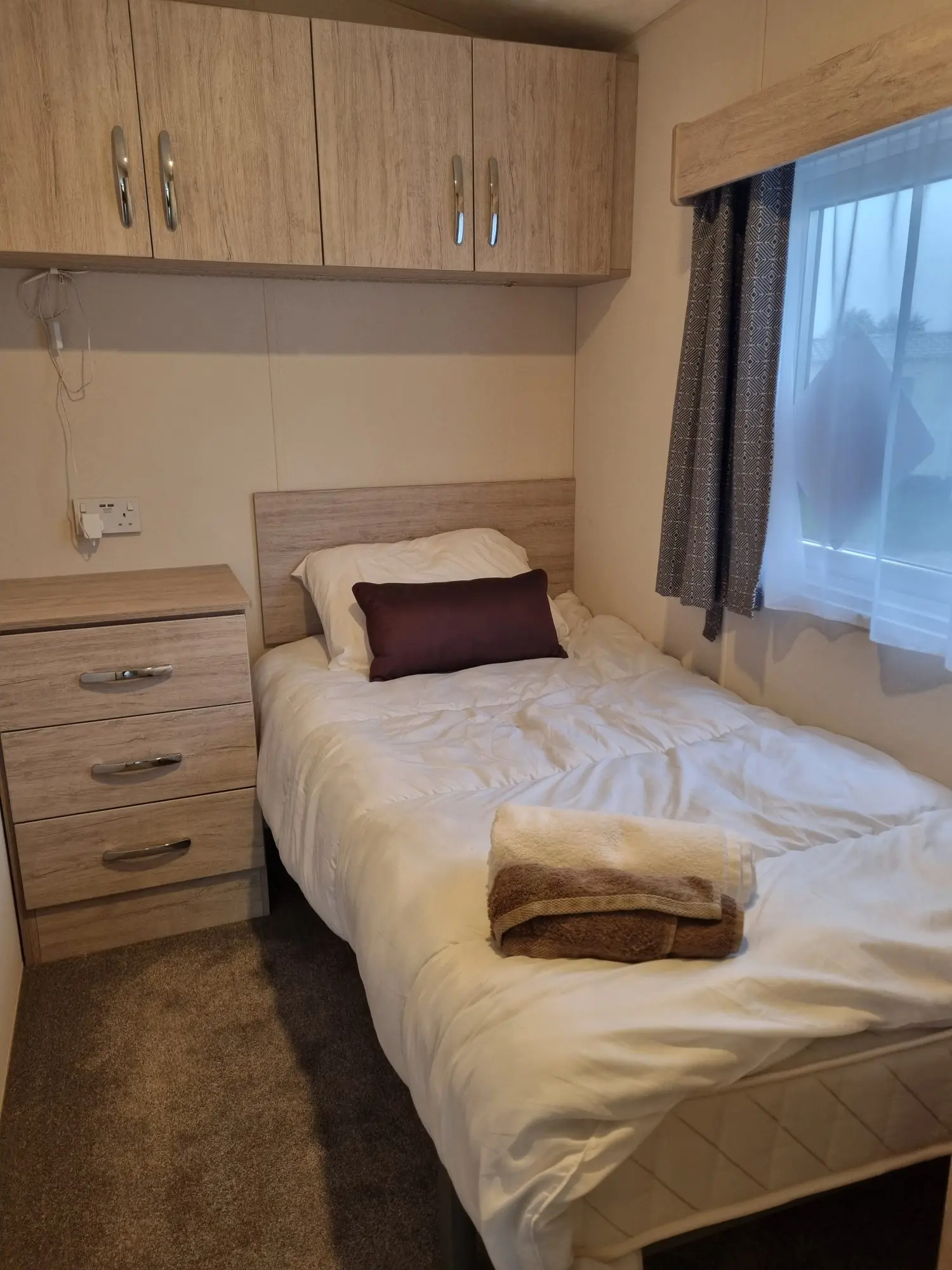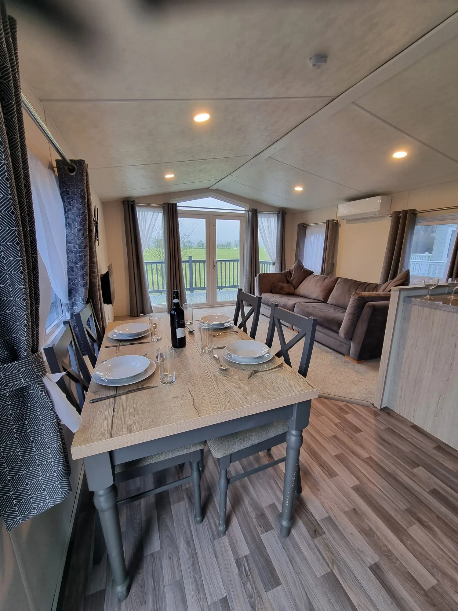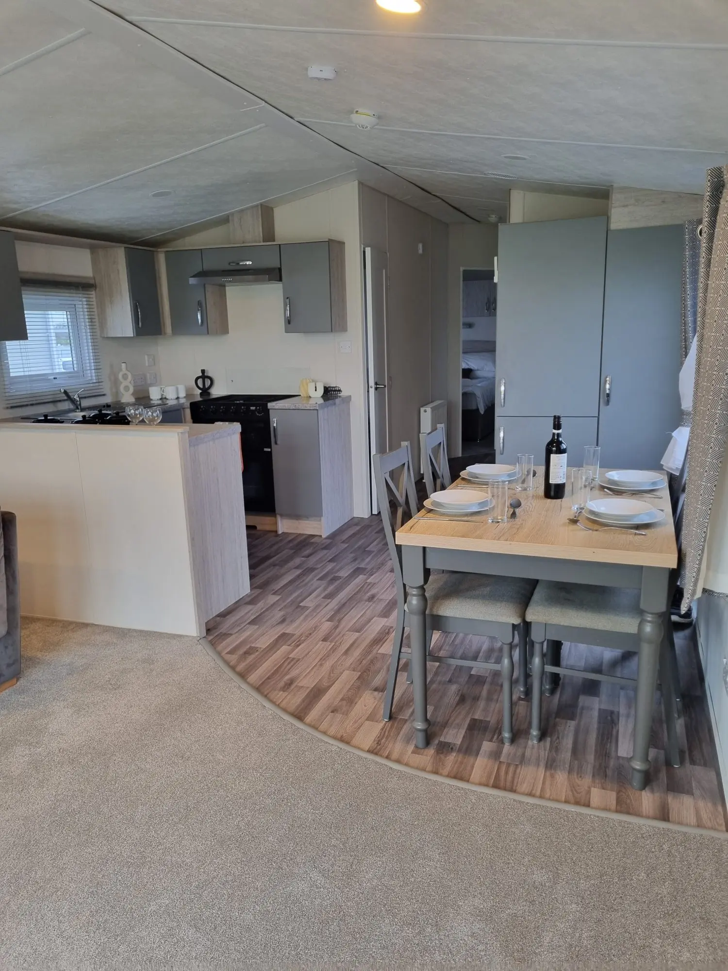 The Sunrise Deluxe is ideal for those looking to create a personalised retreat. This bright and airy holiday home features and oven, grill, hob and an integrated fridge freezer, providing all the essentials for your culinary needs. The lounge is equipped with a sofa, electric fire and a TV bracket, ready for your personal touch. Customise the space with your own furniture to truly make it your own.