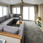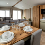 The spacious open-plan living area is the heart of the Ashberry, perfect for switching into holiday mode. The large, comfy corner sofa is an invitation to kick back and enjoy a cuppa while soaking in the views through bright, airy windows. Natural wood accents, a handy TV unit, and practical storage make this space both stylish and functional.