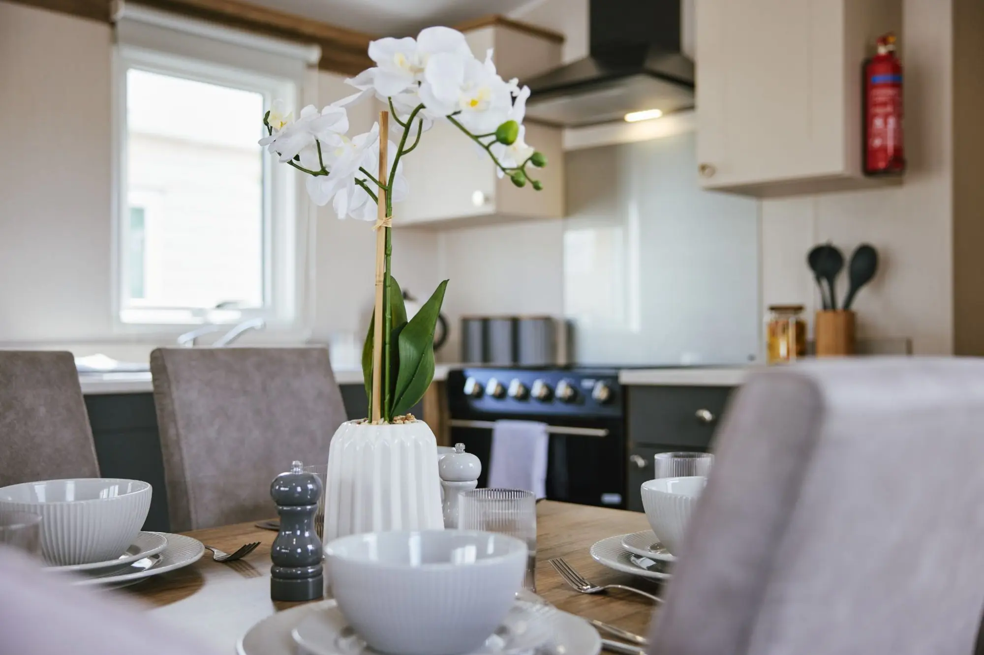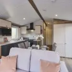 The lounge offers plenty of space to relax, whether you want to put your feet up in front of the tv or chill out with friends and family. The big windows are perfect for enjoying your lakeside view, with the comfy freestanding furniture which is perfect for moving around and making the most out of your stunning view. There’s even a pull out sofa bed for when you have extra guests.