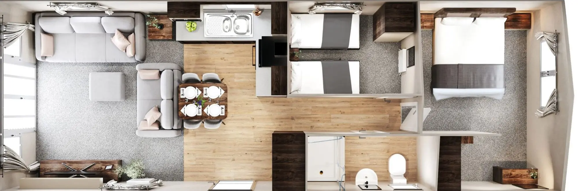 One of the most important rooms in your holiday home is the bedrooms. The Malton offers comfortable bedrooms that use their space well. The master bedroom is big enough to be comfortable, and with clever storage solutions and a walk around wardrobe, meaning you will have plenty of space for your clothes and other bits and bobs.