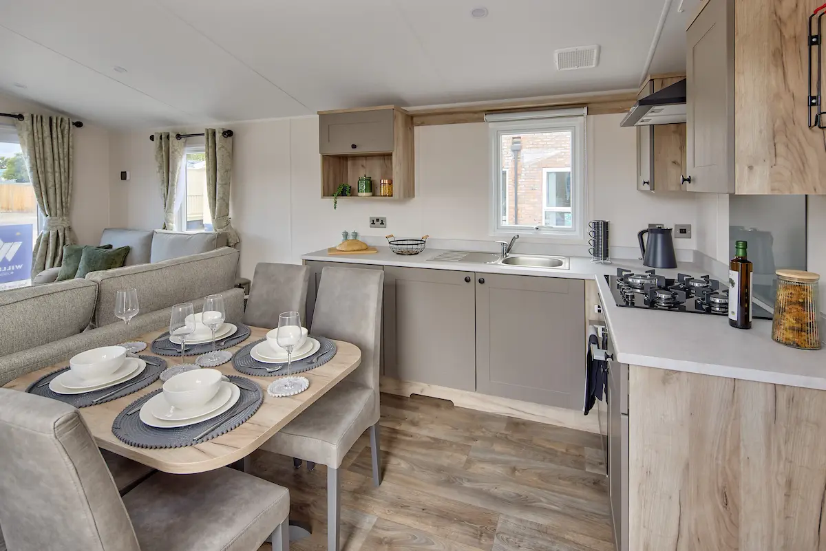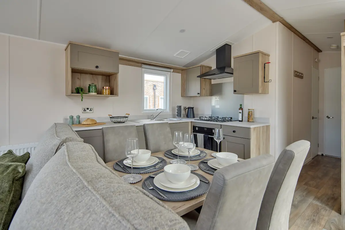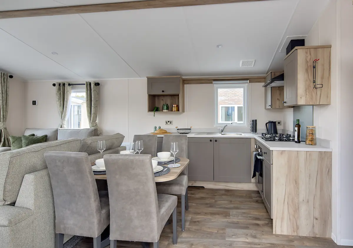 This stylish starter holiday home comes packed full of all the comforts of home - from central heating and freestanding furniture to its well equipped shaker style kitchen, it seamlessly combines traditional design with modern practicality. The open-plan layout gives the home a real sense of space, creating a warm and welcoming environment from the moment you step in the door.