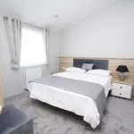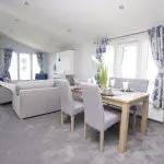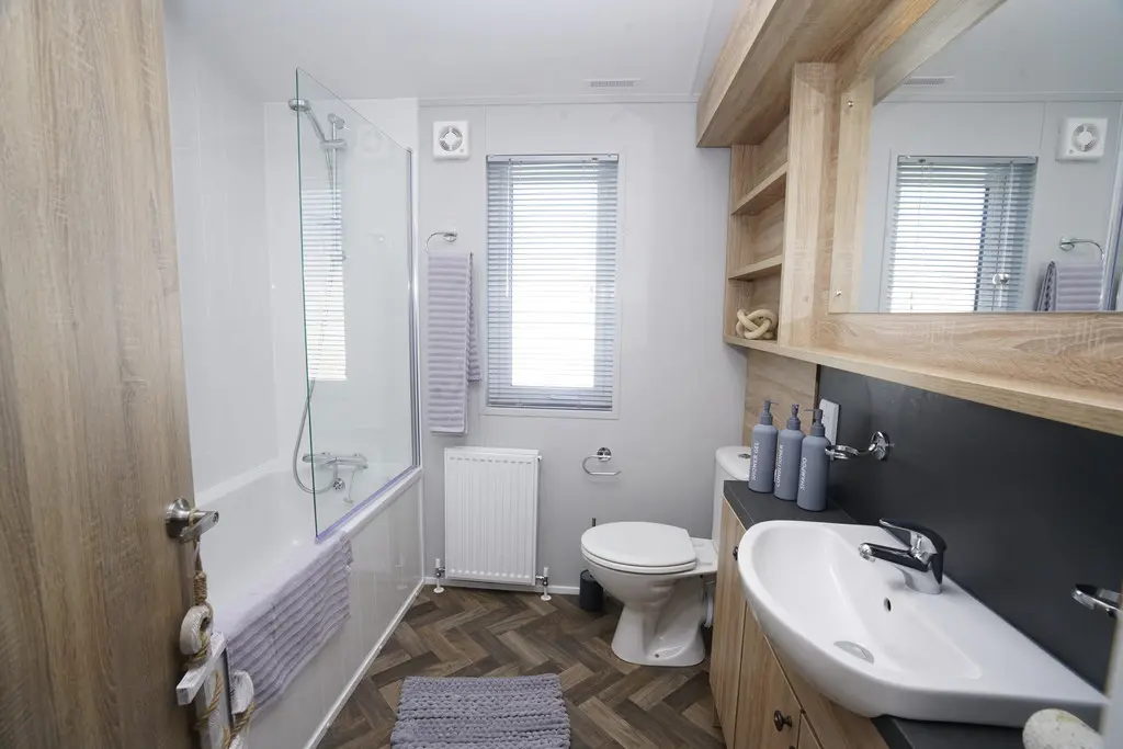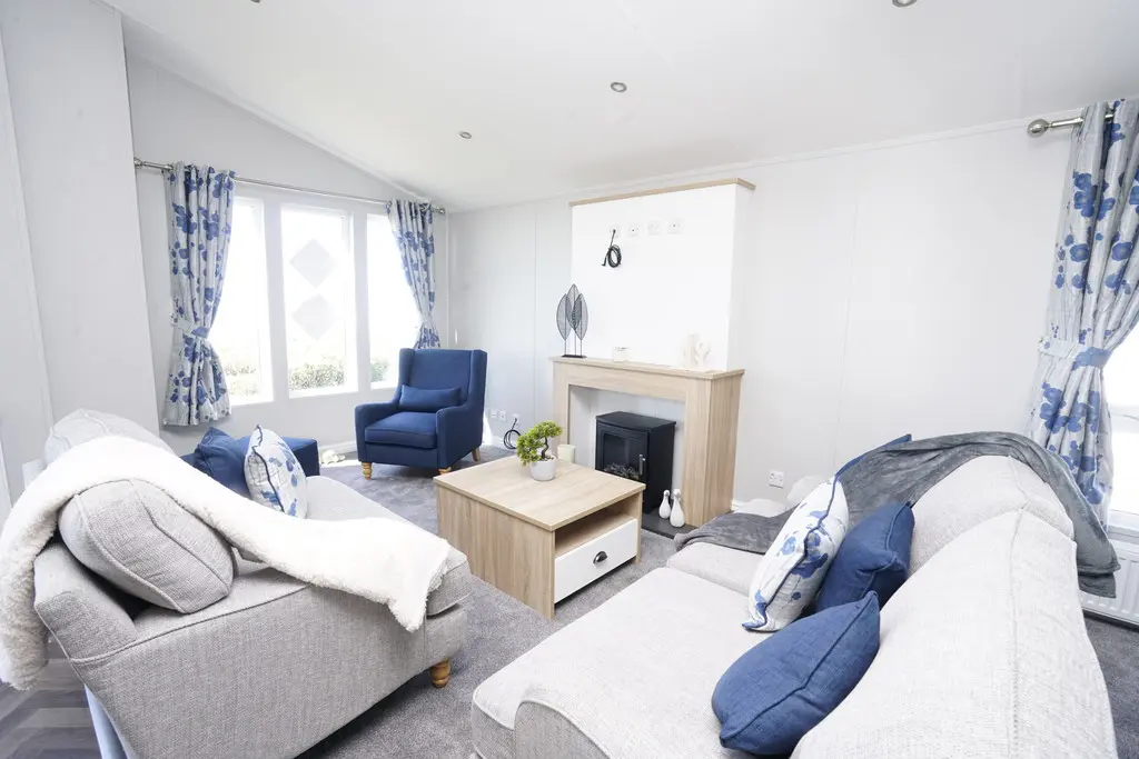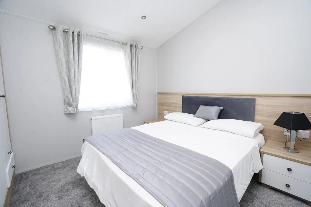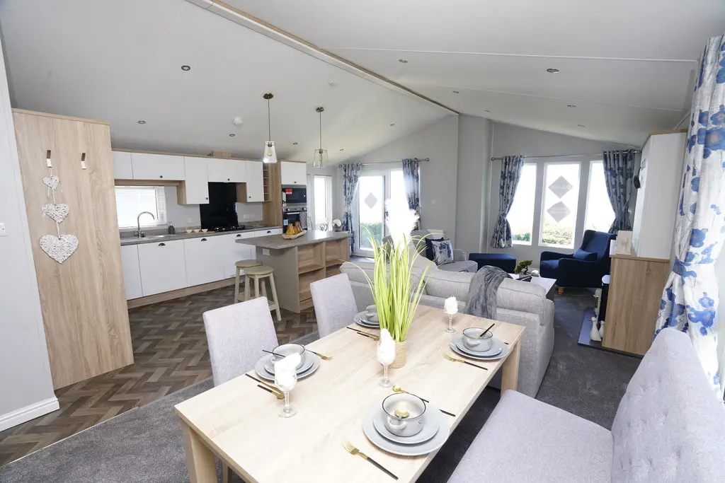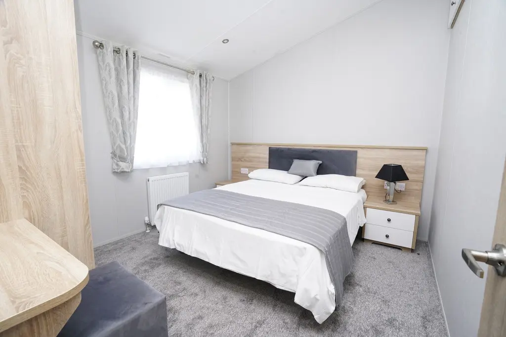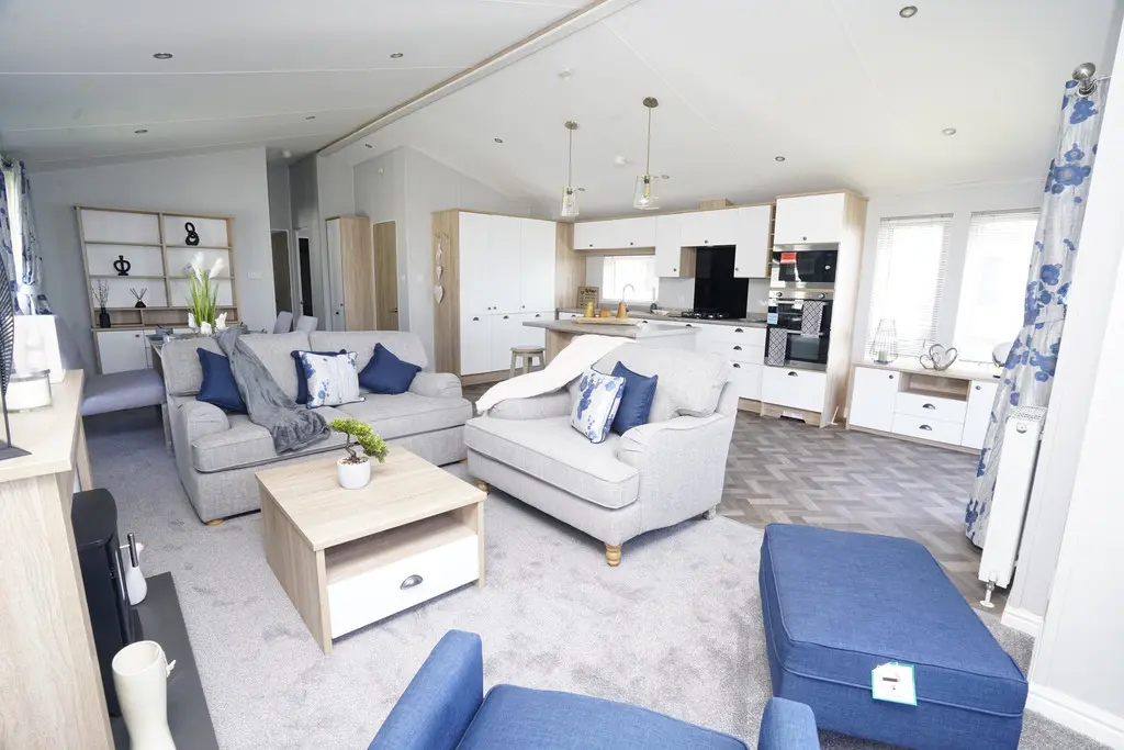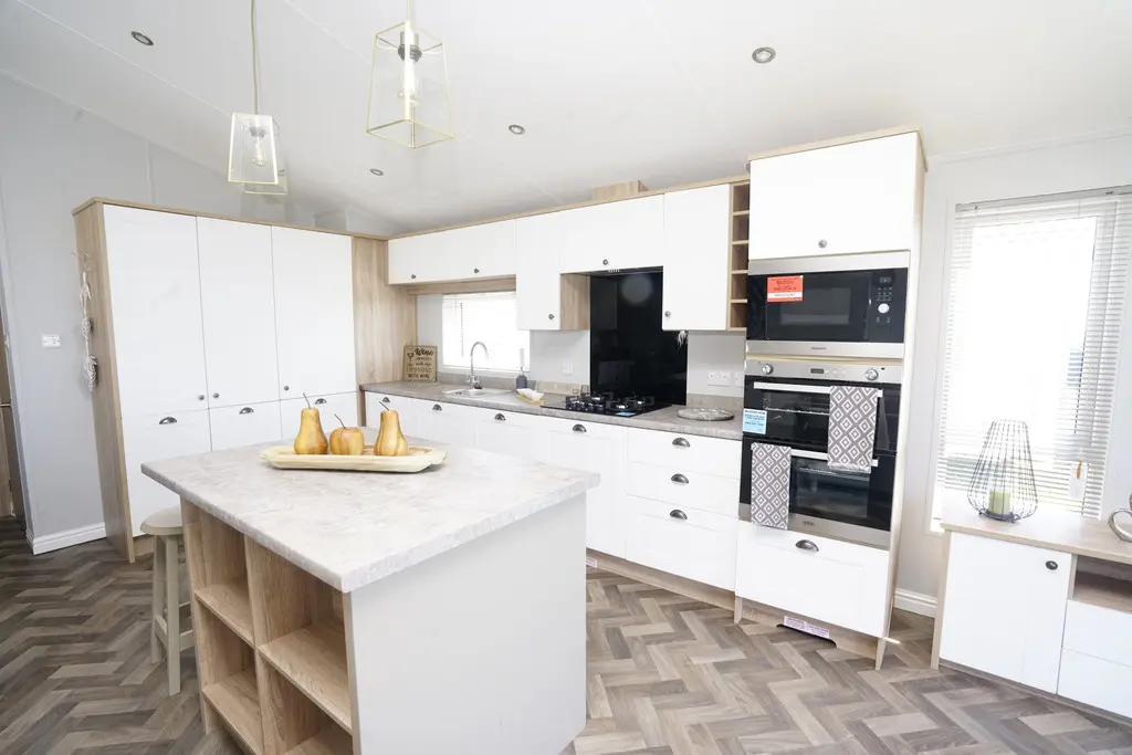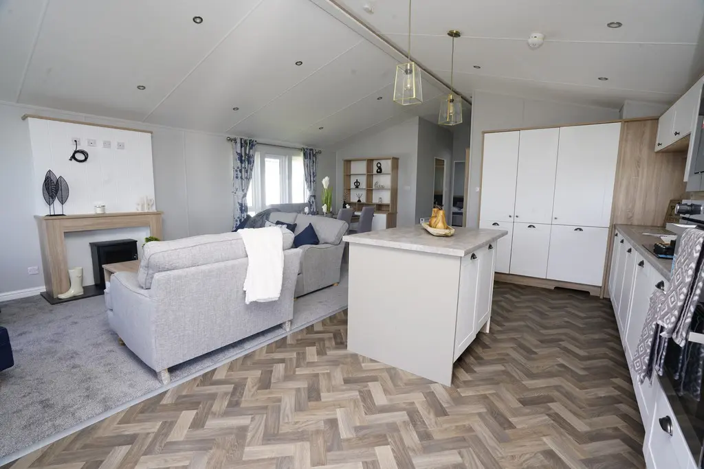 With a fresh colour scheme and thoughtful design, the Pinehurst is ideal for a relaxing getaway. This open-plan lodge features king-size beds in both bedrooms, a cozy living area with a three-piece suite, and a large kitchen with an island.